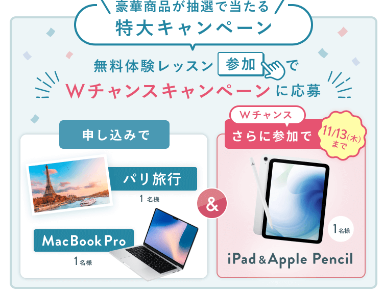 あなたに合ったコースのプランニングやご相談をお受けし、ご入会までサポートします。 ※過去に体験レッスンに参加したことがある方はこちらを選択ください。